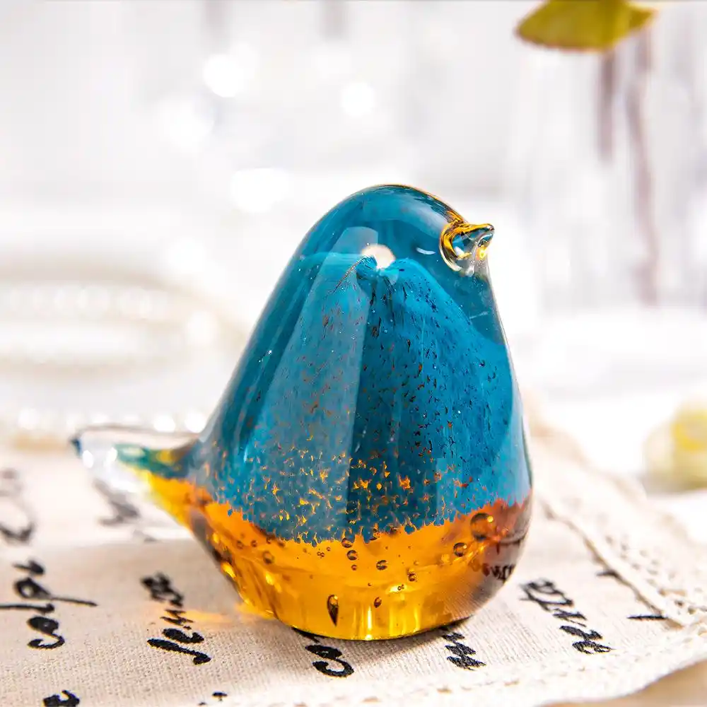 Glass Blue Bird Figurines - This little bird is so versatile that it can be hung from any room of your home or in your garden.