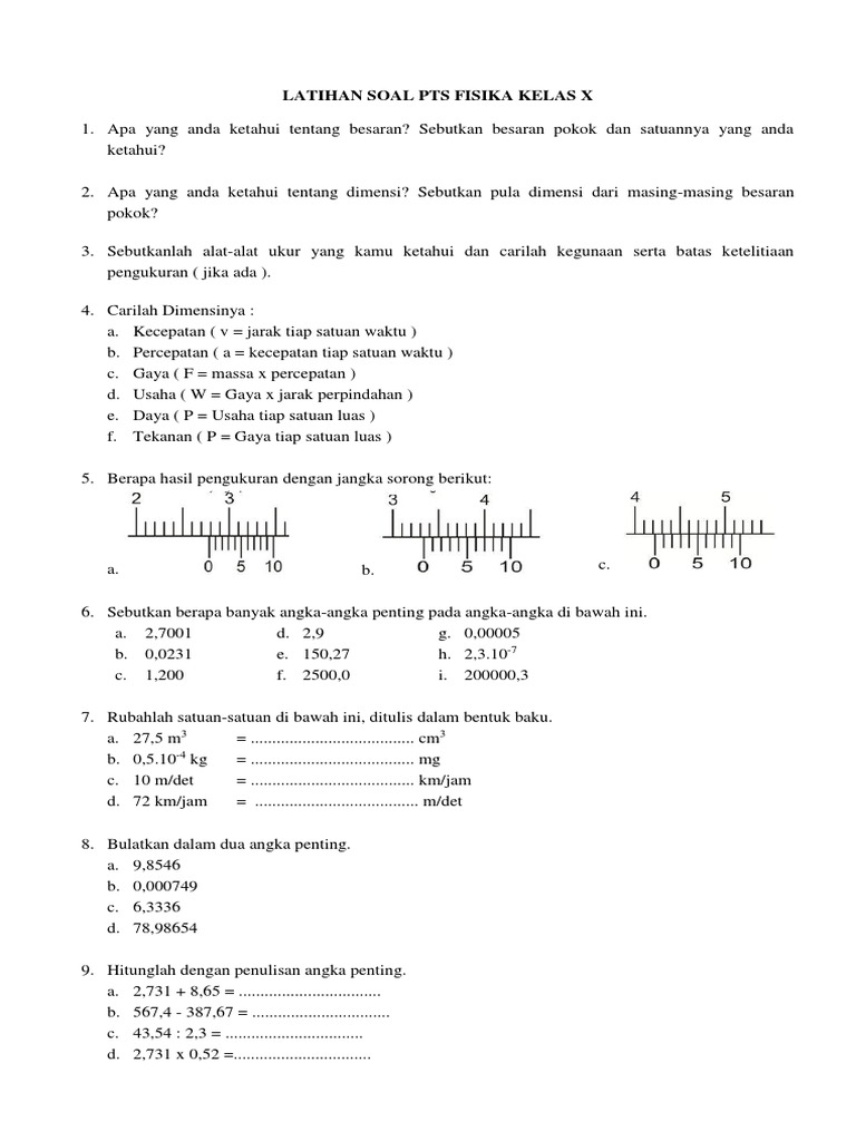 Berikut bospedia memberikan soal uas fisika kelas 10 sma/ma. Semua angka bukan nol adalah angka penting, kecuali ada tanda kusus. Maka banyak angka penting hasil pengukuran tersebut adalah. Contoh soal fisika smk kelas 10 semester 2. Contoh soal ipa fisika kelas 10 sma ma untuk mendapatkan soal yang kami unggah dalam website ini anda cukup memiliki aplikasi pdf di perangkat guru sd smp sma contoh soal fisika sma beserta jawabannya.